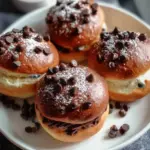 Verführerische Schoko-Brötchen, frisch aus dem Ofen, strömen mit einem einladenden Aroma von geschmolzener Schokolade und süßem Quark in die Luft. Diese kleinen Köstlichkeiten sind nicht nur eine Augenweide, sondern entzücken auch den Gaumen mit ihrer weichen, fast cremigen Konsistenz. Jeder Bissen entblättert sich in einem köstlichen Spiel von Texturen – von der knusprigen Außenhaut, die beim Hineinbeißen zart knackt, bis hin zum warmen, schokoladig-süßen Inneren, das auf der Zunge zergeht. Man kann sich kaum zurückhalten, die divenhafte Versuchung gleich nach dem Backen zu genießen.