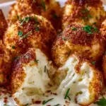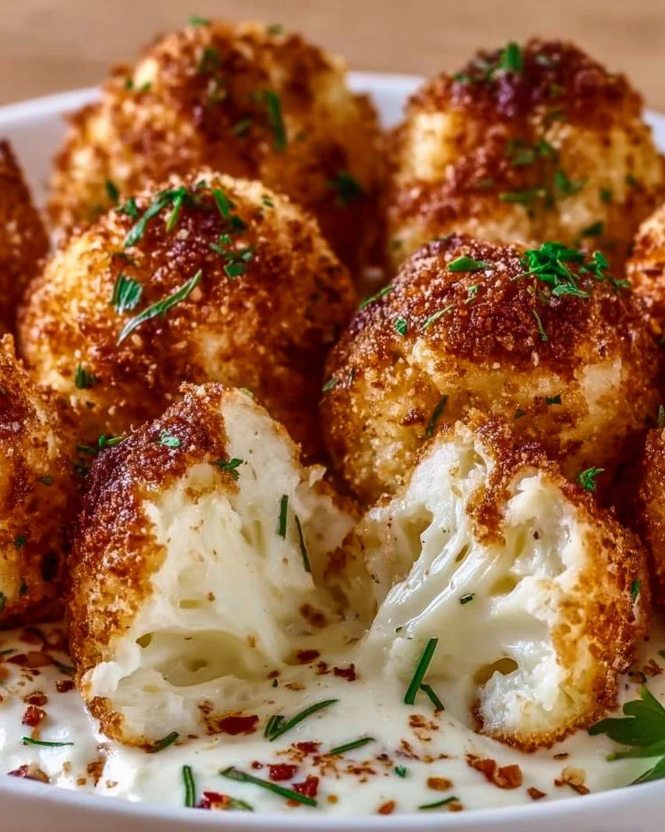 Leckere und knusprige Blumenkohl-Mozzarella-Bällchen, perfekt als Snack oder Vorspeise.