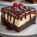 Wenn Sie das erste Stück auf Ihren Teller legen, können Sie die glänzende Schokoladenschicht und die samtige Käsekuchenfüllung bereits sehen. Der erste Biss bringt eine Explosion von Geschmack. Der süße, keksartige Brownieboden kombiniert mit der sanften, süßen Frischkäsefüllung, die mit einem Hauch von Vanille verfeinert ist, wird Ihre Geschmacksknospen begeistern. Jeder Bissen wird zu einem unvergesslichen Genuss, der perfekt für Festlichkeiten, Feiern oder einfach nur so ist. Diese Torte ist mehr als nur ein Dessert – sie ist das Highlight jeder Zusammenkunft.