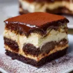 Bestäuben Sie die oberste Schicht mit Kakaopulver, um eine ansprechende Präsentation zu erzielen, und stellen Sie das Dessert für mindestens 2 Stunden in den Kühlschrank, damit sich die Aromen entfalten können.