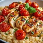 Die Küche erfüllt sich schnell mit einem verlockenden Aroma, das den gesamten Raum durchzieht. Die köstliche Kombination aus zartem Hähnchen, frisch gehackten Kräutern und dem verführerischen Duft von geschmolzenem Mozzarella bringt Erinnerungen an unvergessliche Familienabende in den Vordergrund. Jedes Mal, wenn Sie den Löffel in die cremige Reis-Pfanne tauchen, breitet sich ein wohltuendes Gefühl von Wärme und Zufriedenheit aus. Die Mischung aus saftigem Hähnchen und perfekt gegartem Reis bietet eine Textur, die sowohl reichhaltig als auch leicht ist – der Genuss ist einfach unbeschreiblich. Wenn die Aromen von Tomaten und Gewürzen die Geschmacksknospen umschmeicheln, ist das Essen viel mehr als nur eine Mahlzeit; es ist eine Feier der Sinne.
