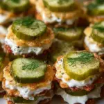 Knusprige Ritz-Cracker gefüllt mit einer cremigen Käsemischung und frischen Dillgurken – ein perfekter Snack für jede Feier.