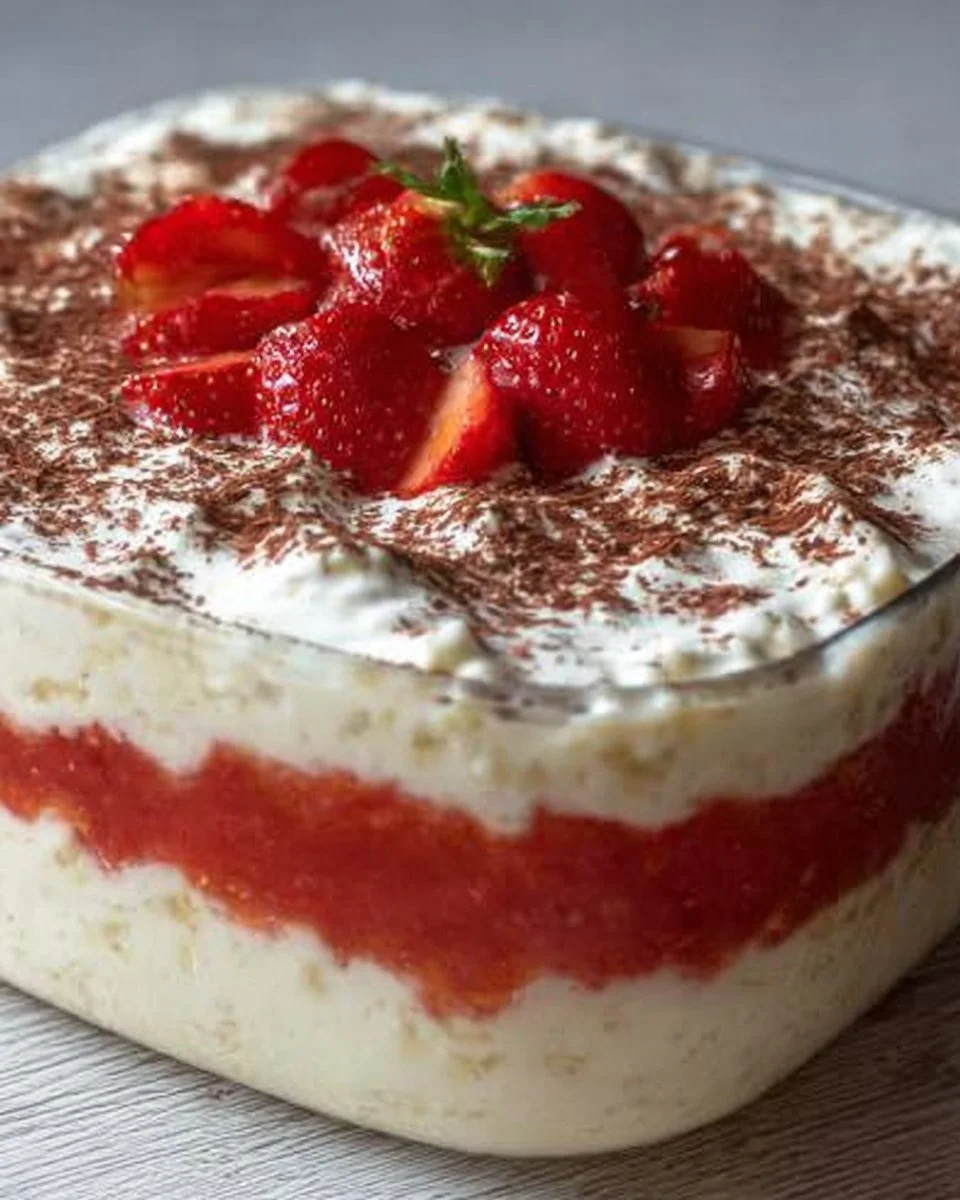 Ob beim Familienessen, einem besonderen Anlass oder einfach nur als Leckerei für den gemütlichen Abend – dieses Tiramisu entzückt und erfreut. Es vereint die Aromen des klassischen italienischen Desserts mit dem unwiderstehlichen Charme von Milchreis und frischen Erdbeeren. Das Ergebnis ist eine echte Gaumenfreude, die selbst die größten Kritiker der Süßspeisen überzeugen wird.