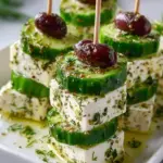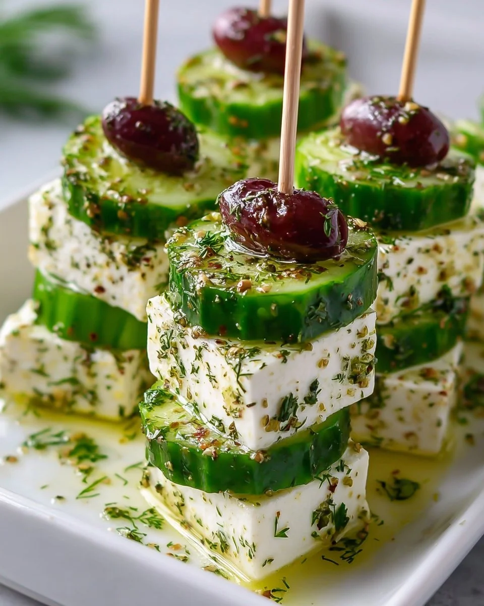 Erfrischende Feta-Gurken-Spieße, perfekt für den Sommer, einfach zuzubereiten und köstlich.