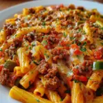 Ein herzhaftes Gericht mit Nudeln, Hackfleisch, Gemüse und Käse, das in einer cremigen Soße gebacken wird.