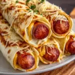 Knusprige Tortillas umhüllen herzhaft-würzige Hot Dogs mit geschmolzenem Käse für den perfekten Snack.