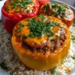 Ein herzhaftes Gericht aus gefüllten Paprika mit einer saftigen Füllung aus Hackfleisch und Reis, perfekt für Familienessen.