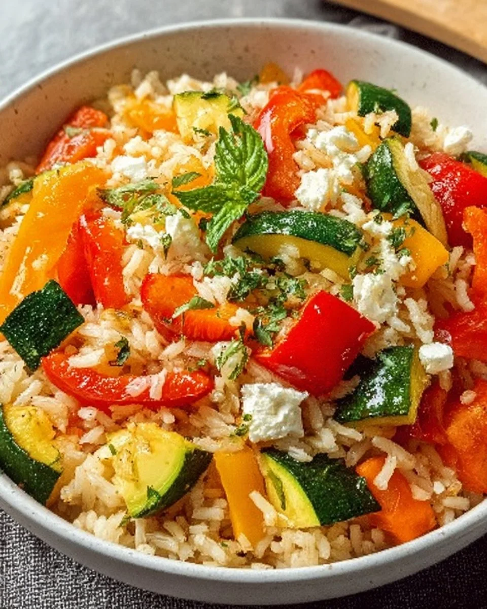 Eine bunte und gesunde Gemüse-Reispfanne, die durch frische Zutaten und harmonische Aromen begeistert.