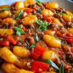 Eine köstliche Gnocchi Pfanne mit Hackfleisch, Paprika und Gewürzen, perfekt für gesellige Abende.