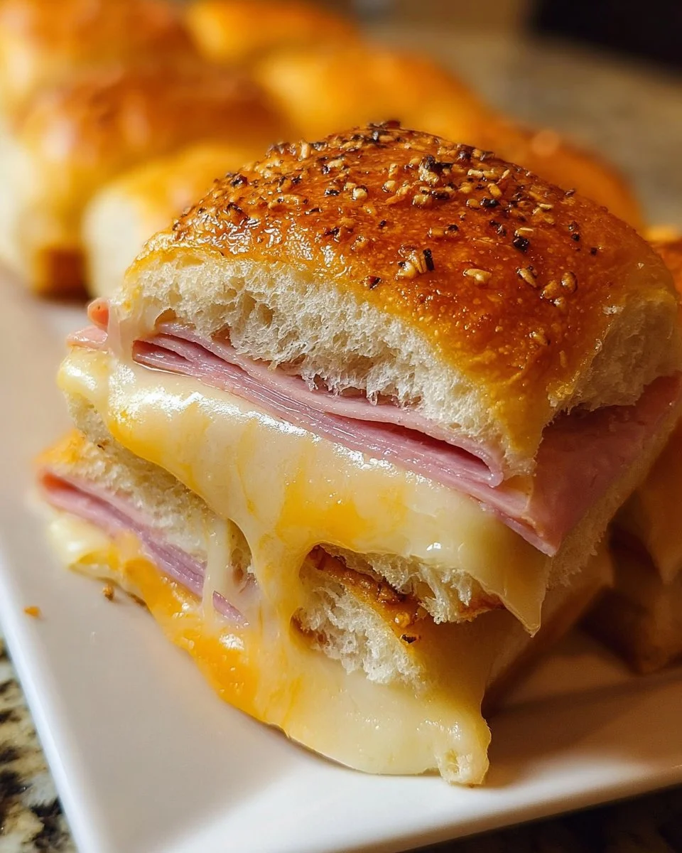 Ein köstlicher Käsetoast aus süßen Hawaiian Rolls, gefüllt mit schmelzendem Käse und einem Hauch von Schinken, perfekt für jede Gelegenheit.