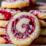 Zarte Himbeer-Wirbel Shortbread-Kekse mit fruchtiger Himbeermarmelade und buttriger Textur.