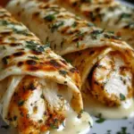 Herzhafte Käse-Knoblauch-Hühnchen-Wraps, perfekt für gesellige Abende oder als köstliches Mittagessen.