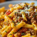 Ein herzhaftes und cremiges Gericht, das die Aromen eines klassischen Cheeseburgers in Form von Pasta vereint.