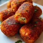 Köstliche, goldbraun gebratene Linsen-Kroketten, die außen knusprig und innen zart sind. Perfekt als Hauptgericht oder Snack.