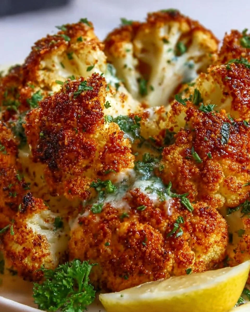- Servieren: Nehmen Sie den Blumenkohl aus dem Ofen, bestreuen Sie ihn mit frischer Petersilie und servieren Sie ihn zusammen mit Zitronenspalten.