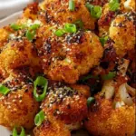 Koreanischer gebackener Blumenkohl, knusprig und würzig serviert.