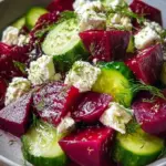Ein erfrischender Rote-Bete-Salat mit Feta und Gurken, perfekt als Beilage oder leichtes Hauptgericht.
