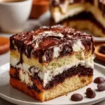 Ein köstlicher, marmorierter Kuchen mit zarten Schichten aus Schokoladen- und Vanilleteig, gefüllt mit einer cremigen Frischkäseglasur.