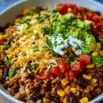 Es gibt so viele Gründe, sich in diese Taco Reis Schüssel zu verlieben. Zuerst einmal bietet sie eine harmonische Mischung aus verschiedenen Texturen und Aromen – von dem herzhaften Fleisch zu den zarten Bohnen, dem süßen Mais und der samtigen Avocado. Darüber hinaus ist das Gericht äußerst anpassungsfähig; Sie können es nach Ihrem Gusto variieren und gestalten. Für milde Aromen verwenden Sie Hähnchen oder lassen den Käse weg. Für diejenigen, die es pikant mögen, können Sie Chili oder zusätzliche Salsa hinzufügen.