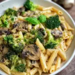 Eine köstliche und gesunde vegane Pasta mit frischen Champignons, Brokkoli und Vollkornnudeln, perfekt für ein schnelles Abendessen.