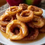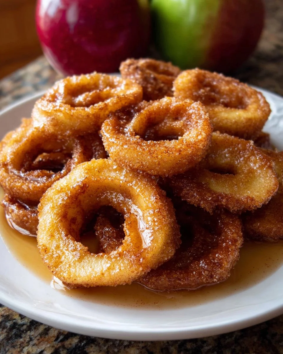 Zimt-Apfelringe sind eine köstliche Kombination aus zarten Äpfeln, die mit Zimt und Zucker überzogen und knusprig gebacken werden.