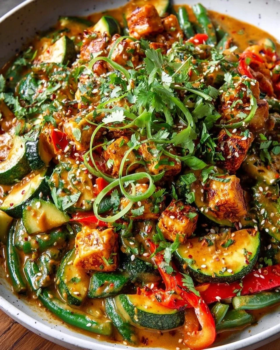 Key Ingredients: Die Zucchini können auch durch Auberginen oder Kürbis ersetzt werden, wenn Sie diese bevorzugen. Ähnlich können Sie die Bohnen variieren – grüne Bohnen sind herrlich, aber auch andere Sorten können hinzugefügt werden. Beim Erdnussbutter können Sie eine crunchy Variante verwenden, um etwas Textur hinzuzufügen.
